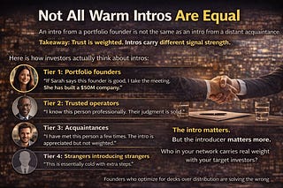 An intro from a portfolio founder is not the same as an intro from a distant acquaintance.